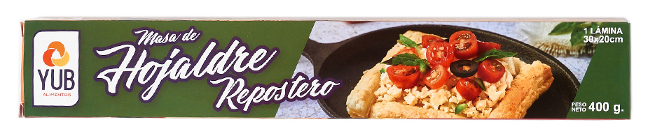 Nuestra Masa de Hojaldre Repostero te facilita la creación de postres o platos salados a partir de recetas tradicionales, caseras o técnicas modernas. Nuestros clientes la utilizan mayormente en repostería y pastelería. Su versatilidad te permite crear infinidad de platos que van a sorprender a tus invitados. Con la superposición de varias capas se puede obtener una textura crujiente y de un sabor muy delicado. Viene en una presentación de 1 lámina de 30 x20 cm.